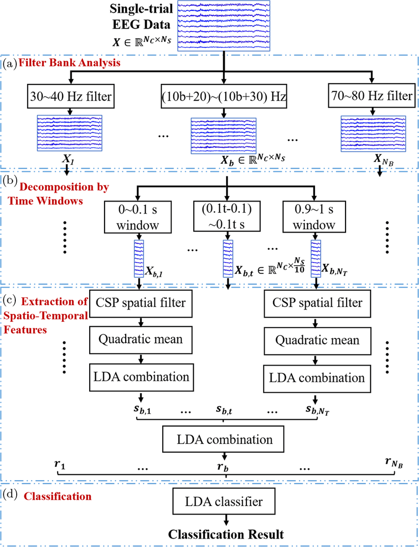 快速连续视觉呈现(RSVP)是一种脑电图(EEG)模式,常用于目标识别。除了用于分类的 delta 波段和 theta 波段反应外,RSVP 任务还会引起振幅较低且个体差异较大的 gamma 波段反应。本文提出了一种滤波器组时空分量分析(FBSCA)方法,首次提取了伽玛波段响应的时空特征,以提高 RSVP 的分类性能。考虑到时间延迟和响应频率的个体差异,所提出的 FBSCA 方法将伽马波段脑电图数据分解为不同时频空间域的子分量,并寻求权重系数以优化电极、共同空间模式(CSP)分量、时间窗和频段的组合。比较中使用了两种最先进的方法,即分层判别主成分分析法(HDPCA)和判别典型模式匹配法(DCPM)。在 10×10使用公共数据集进行交叉验证。研究结果表明,无论训练次数多少,FBSCA 方法都优于其他方法。这些结果表明,所提出的 FBSCA 方法可以增强 RSVP 分类能力。
